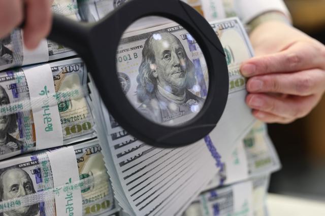 서울 중구 하나은행 위변조대응센터에서 직원이 달러화를 정리하고 있는 모습 [사진=연합뉴스] |