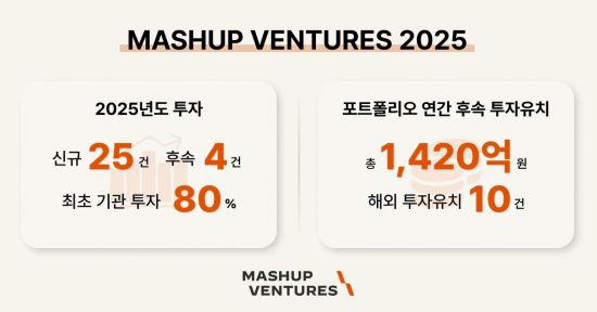 매쉬업벤처스는 지난해 신규 투자 25건, 후속 투자 4건 등 총 29건의 투자를 집행했다. 특히 신규 투자 기업 10곳 중 8곳은 기관으로부터 처음 투자를 받는 극초기 단계였다. 유망한 팀을 가장 먼저 발견해 성장을 돕는 매쉬업벤처스 특유의 역량이 반영된 결과로 풀이된다.
