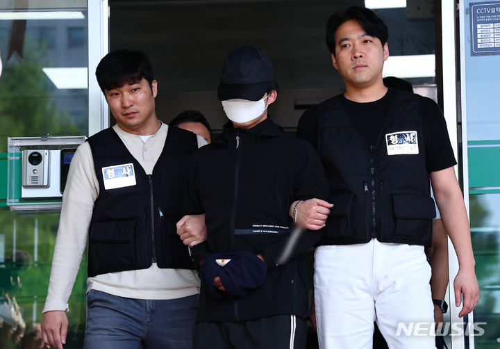 [서울=뉴시스] 김근수 기자 = 서울 강남역 인근에서 여자친구를 흉기로 살해한 의대생 최모씨가 지난 2024년 5월 서울 서초구 서초경찰서에서 서울중앙지검으로 송치되고 있다.2026.03.05.ks@newsis.com |