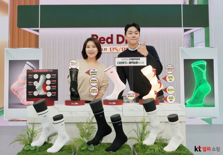 KT알파 쇼핑이 홈쇼핑 업계 최초로 선보인 '레드닥터 벤업 라이프 시리즈'는 양말처럼 일상에서 편하게 신을 수 있어 24시간 밀착케어가 가능한 압박밴드다.