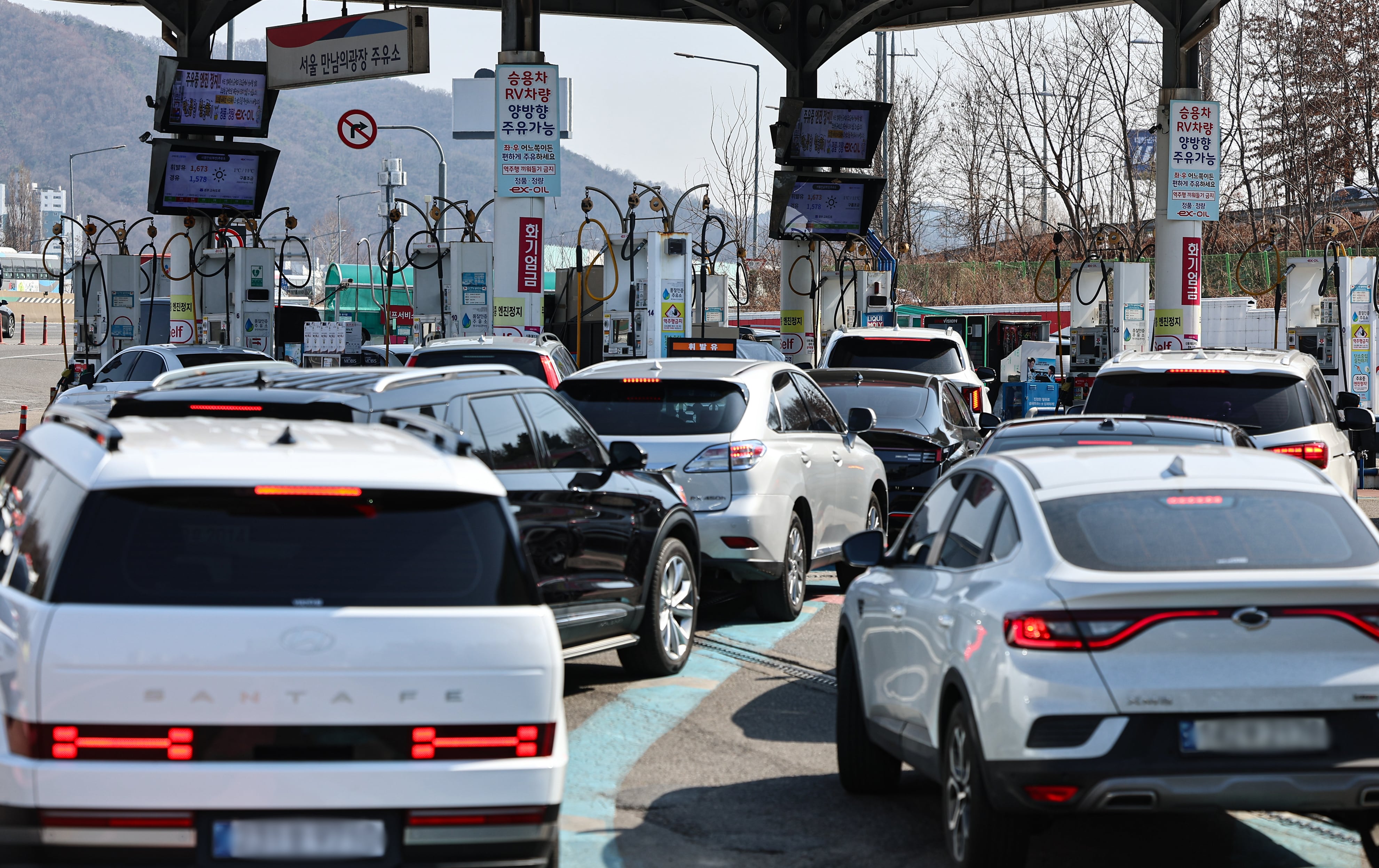 미국과 이란 전쟁 여파로 국제 유가가 상승하고 있는 4일 서울 서초구 경부고속도록 만남의광장 주유소에서 시민들이 주유를 하고 있다. /뉴스1 |