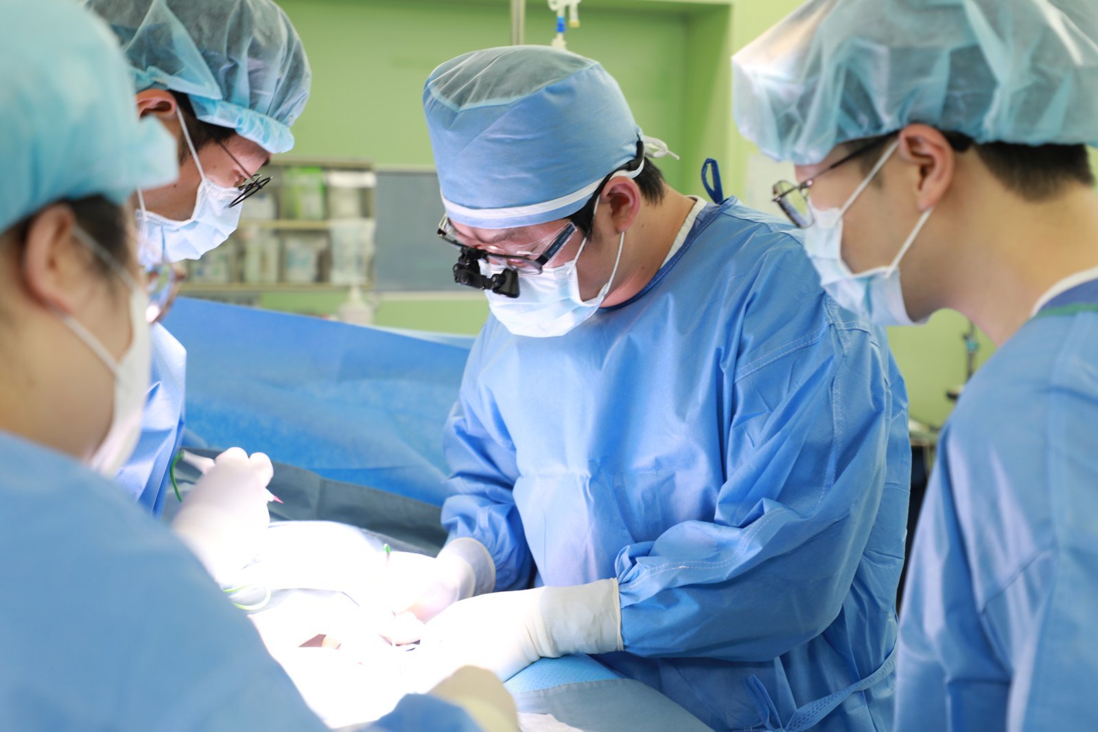 노범용 인하대병원 비뇨의학과 교수(가운데)가 생후 10개월 된 남아의 잠복고환 치료를 위한 수술을 하고 있다. 인하대병원 제공 |