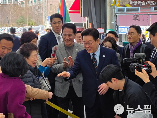 정월대보름을 앞둔 이날 이 대통령은 온누리상품권으로 찰밥과 동치미 등을 직접 구매하고 고추튀김 등 시장 먹거리를 시민들과 나누며 상인들을 격려했다.