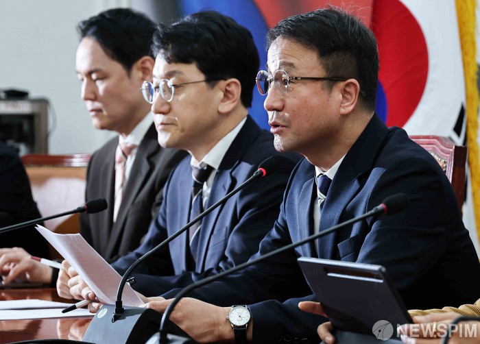 [서울=뉴스핌] 윤창빈 기자 = 한병도 더불어민주당 원내대표가 6일 오전 서울 여의도 국회에서 열린 정책조정회의에서 모두발언을 하고 있다. 2026.03.05 pangbin@newspim.com
