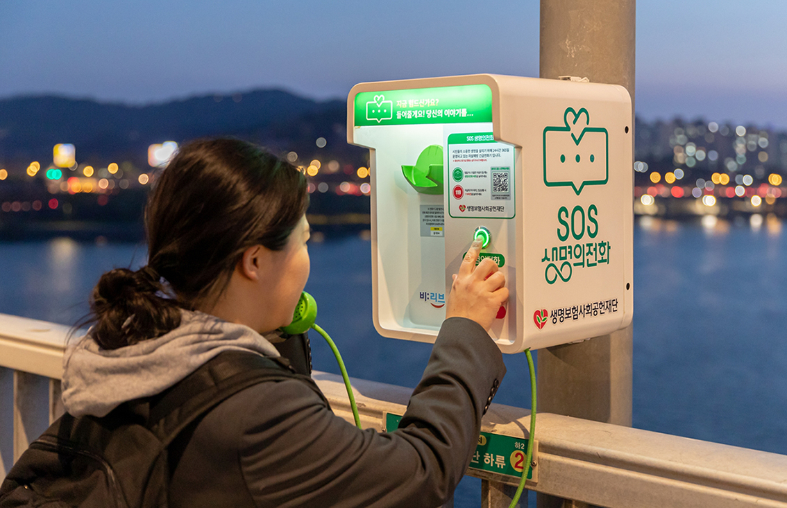 한강 교량 위 ‘SOS 생명의전화’를 통해 소중한 생명을 지켜온 생명보험사회공헌재단이 한국가이드스타 주관 공익법인 평가에서 9년 연속 최우수 등급인 ‘별 3점’을 획득했다. 사진은 SOS 생명의전화를 통해 상담을 하는 모습. |