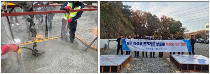 두산건설은 이런 상황을 고려해 외부 수분 유입을 억제해 물·시멘트 비율 변화를 최소화하고 재료 분리와 강도 저하를 줄일 수 있는 콘크리트 기술을 개발했다. 이를 통해 정부 가이드라인 기준을 넘어서는 강우 조건에서도 품질 안정성을 확보하도록 설계했다.