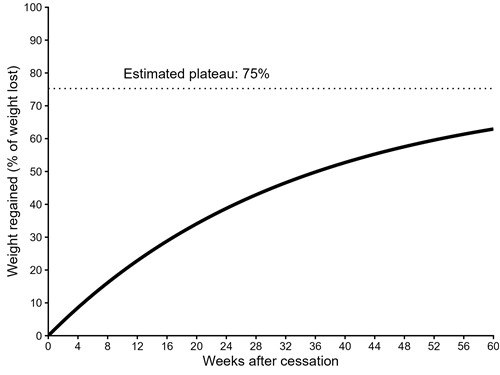 그 결과 약물 사용을 중단하면 초기에는 체중이 빠르게 증가하지만, 시간이 지날수록 증가 속도가 둔화해 52주 시점에는 원래 감량했던 체중의 60%가 다시 증가하는 것으로 나타났다.