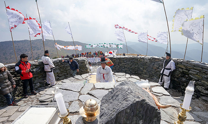 매년 10월 3일 태백산국립공원 정상의 태백산 천제단에서 하늘에 제사를 지내는 태백산 천제가 진행되고 있다.(사진=태백시 제공) *재판매 및 DB 금지 |