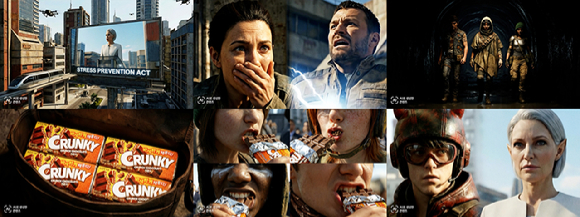 지난 4일 롯데웰푸드 공식 유튜브 채널 '맛깔스튜디오'를 통해 첫 공개된 스낵시네마 제1화는 영화 '패션왕' 등을 연출한 오기환 감독의 작품 '바삭한 도시'다. 롯데웰푸드의 대표 초콜릿 브랜드 '크런키'를 모티프로 한 이 작품은 소음을 철저히 통제당해 스트레스에 취약해진 가상의 세계를 배경으로 한다. 주인공이 크런키를 통해 잃어버린 일상의 활력과 자유를 되찾는다는 흥미로운 세계관을 AI 기술을 활용해 감각적인 영상미로 구현해 냈다. 매 작품마다 독특한 시각적 재미를 선사해 온 오 감독 특유의 감성이 크런키의 바삭함과 이야기의 통쾌한 매력을 한층 끌어올렸다.
