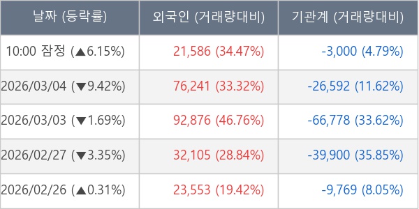 [표] 외국인ㆍ기관 순매매량 (단위 주)