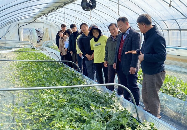 이번 방문은 지역 명품으로 알려진 익산 수박의 고품질 생산 핵심 시기인 착과·비대기 생육 현황을 점검하고, 촉성재배 수박의 재배동향을 파악하며 농업인들의 애로사항을 청취하기 위하여 마련되었다.