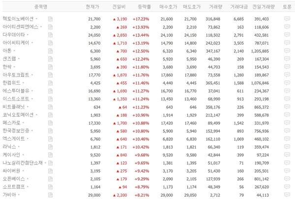 이날은 하락세를 기록했던 종목들이 일제히 반등하며 상승세가 이어졌다. 그 결과 코스피와 코스닥 시장에 프로그램매수호가 효력이 일시 정지되는 사이드카가 발동하기도 했다. 전날은 양 시장 지수가 급락하며 매도 사이드카가 발동된 바 있다.