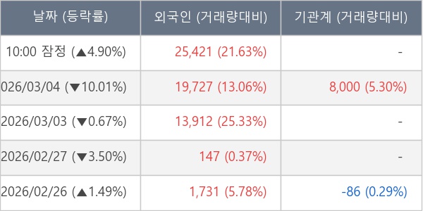 [표] 외국인ㆍ기관 순매매량 (단위 주)
