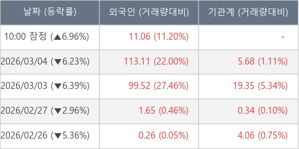 [표] 외국인ㆍ기관 순매매량 (단위 만주)