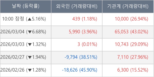 [표] 주요 기관별 순매매량 (단위 주)