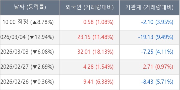 [표] 주요 기관별 순매매량 (단위 만주)