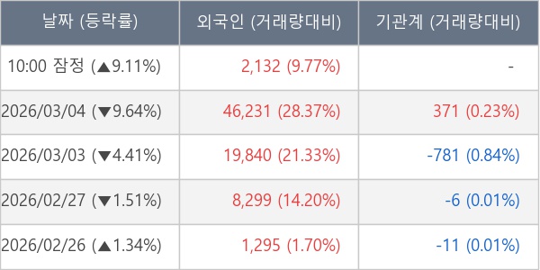[표] 외국인ㆍ기관 순매매량 (단위 주)