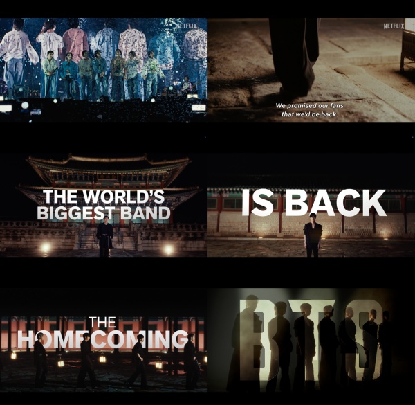 이어 RM의 "We promised our fans that we'd be back"이라는 내레이션과 함께 경복궁으로 장면이 전환된다. 멤버들은 낮과 밤이 교차하는 경복궁을 배경으로 강렬한 존재감을 드러낸다. 또한 "THE WORLD'S BIGGEST BAND IS BACK"(세계 최정상의 그룹이 돌아온다), "WITNESS THE HOMECOMING"(그들의 귀환을 목도하라)이라는 문구가 등장해 컴백에 대한 기대감을 최고조로 끌어올린다. 멤버들은 "하나하나 뭔가가 달라진다는 느낌을 많이 받았어요" "저희 7명이 함께 이 길을 계속 걸어갈 수 있고 계속 헤엄쳐나갈 수 있다고 생각합니다"라고 말하며 새로운 여정을 향한 강한 의지와 기대를 드러냈다. 영상과 함께 공개된 포스터에는 광화문 앞에 선 일곱 멤버의 실루엣이 담겨 눈길을 끌었다.