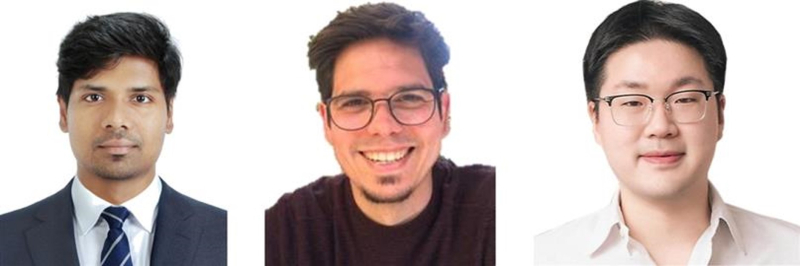 계명대-옥스퍼드대 공동연구팀이 극한환경에서도 구조와 기능을 유지하는 루테늄 산화물 나노입자의 안정성을 규명했다. 왼쪽부터 수렌다(Surendhar, 인도) 연구원(1저자), Tobias Hermann 교수(공동저자), 김익현 교수(교신저자). 계명대 제공 |