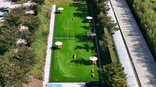 울타리와 인조 잔디 포장, 음수대, 테이블, 차광막 등 안전하고 편리한 시설을 갖췄다.