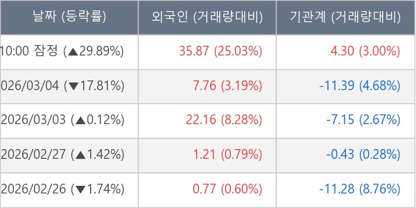 [장중수급포착] 스피어, 외국인 5일 연속 순매수행진... 주가 +29.89%