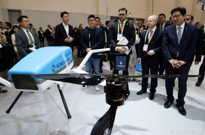 (부산=뉴스1) 윤일지 기자 = 15일 부산 해운대구 벡스코 제1전시장에서 열린 '2025 월드 스마트시티 엑스포'에서 참가자들이 대한항공 부스를 찾아 하이브리드 드론을 살펴보고 있다. 국토교통부와 과학기술정보통신부 주관으로 17일까지 열리는 이번 엑스포에서는 국내외 277개 기관이 참여해 모빌리티, 빌딩·인프라, 에너지·환경, 안전·헬스케어 등 스마트시티 분야의 첨단기술과 서비스를 선보인다. 2025.7.15/뉴스1 Copyright (C) 뉴스1. All rights reserved. 무단 전재 및 재배포, AI학습 이용 금지. /사진=(부산=뉴스1) 윤일지 기자 |