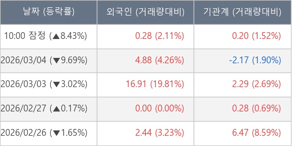 [표] 주요 기관별 순매매량 (단위 만주)