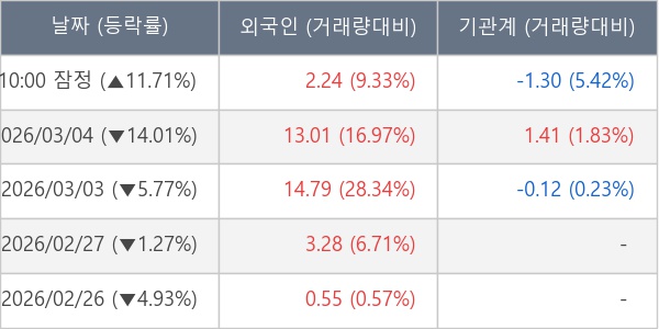 [표] 주요 기관별 순매매량 (단위 만주)