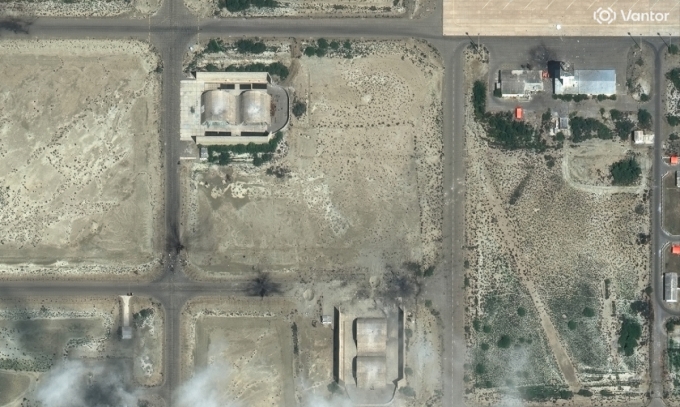 미국과 이스라엘 공습으로 이란 코나라크 공군기지 시설이 파손된 모습. 미국 위성업체 밴터가 제공한 위성 사진./사진=AP(뉴시스) |