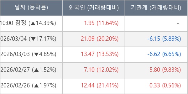 [표] 외국인ㆍ기관 순매매량 (단위 만주)