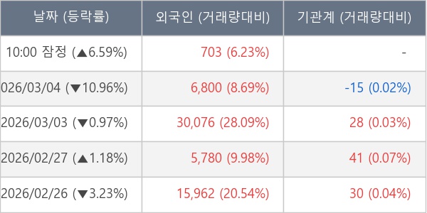 [표] 외국인ㆍ기관 순매매량 (단위 주)