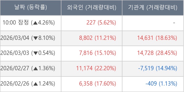 [표] 외국인ㆍ기관 순매매량 (단위 주)