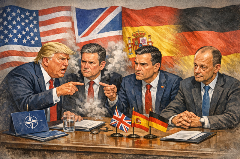 트럼프 대통령은 "스페인은 끔찍하다"면서 스페인이 미국의 이란 공격과 관련해 스페인 군기지 사용을 불허한 것과 스페인이 국내총생산(GDP)의 5%로 국방비를 증액하기로 한 북대서양조약기구(NATO·나토) 약속에 동참하지 않는다는 점을 문제 삼았다. 그러면서 "스페인과 모든 무역 관계를 끊겠다"고 으름장을 놓기도 했다. 이 같은 스페인 때리기에는 산체스 총리가 미국과 이스라엘의 이란 폭격에 비판적인 시각을 가장 먼저 드러낸 유럽 지도자라는 점이 영향을 미친 것으로 보인다.