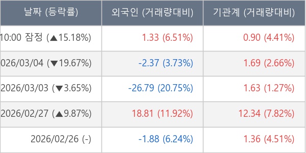 [표] 외국인ㆍ기관 순매매량 (단위 만주)