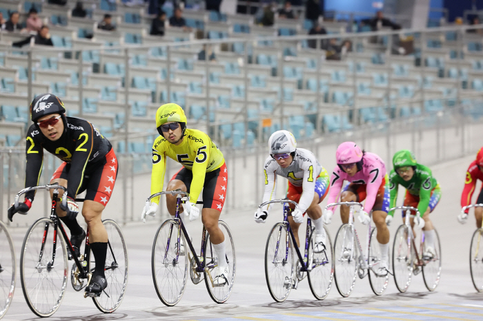 광명스피돔에서 열린 특선급 경주에 출전한 김우겸(5번 노란색). 사진제공=국민체육진흥공단 |