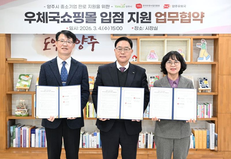 【파이낸셜뉴스 양주=김경수 기자】 경기 양주시는 중소기업 온라인 유통망 확대를 위한 ‘우체국 입점 지원 업무 협약’을 체결했다고 5일 밝혔다.