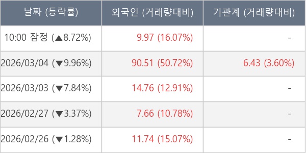 [표] 외국인ㆍ기관 순매매량 (단위 만주)