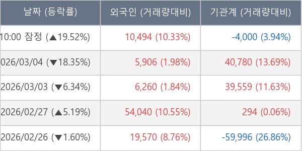 [표] 주요 기관별 순매매량 (단위 주)