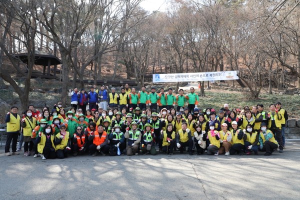 참가자들은 폭설로 부러진 가지와 잔재물을 수거했다. 또 흩어진 설해 피해목의 소형 나뭇가지를 모아 묶어 운반하며 등산로 주변을 정리했다.