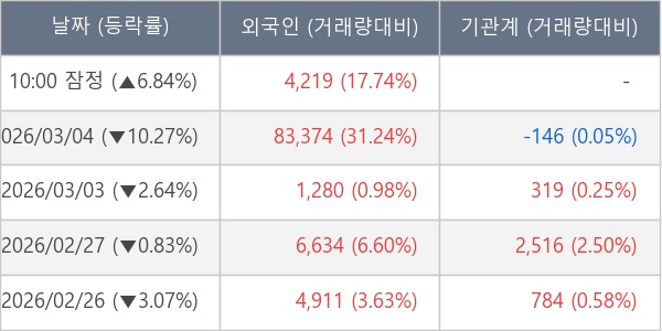 [표] 외국인ㆍ기관 순매매량 (단위 주)