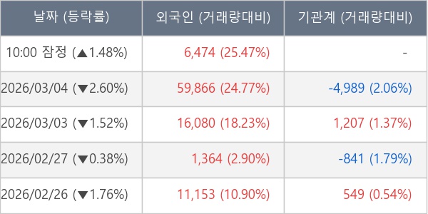 [표] 외국인ㆍ기관 순매매량 (단위 주)