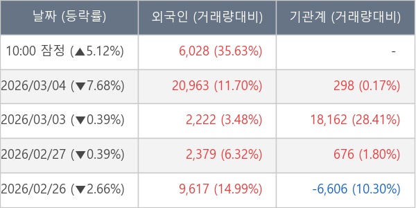 [표] 외국인ㆍ기관 순매매량 (단위 주)