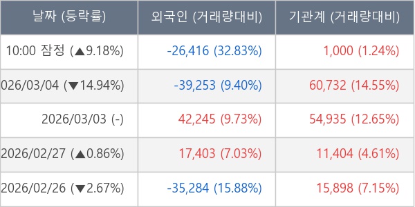 [표] 주요 기관별 순매매량 (단위 주)