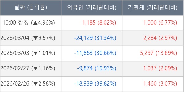 [표] 외국인ㆍ기관 순매매량 (단위 주)