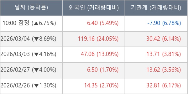 [표] 주요 기관별 순매매량 (단위 만주)