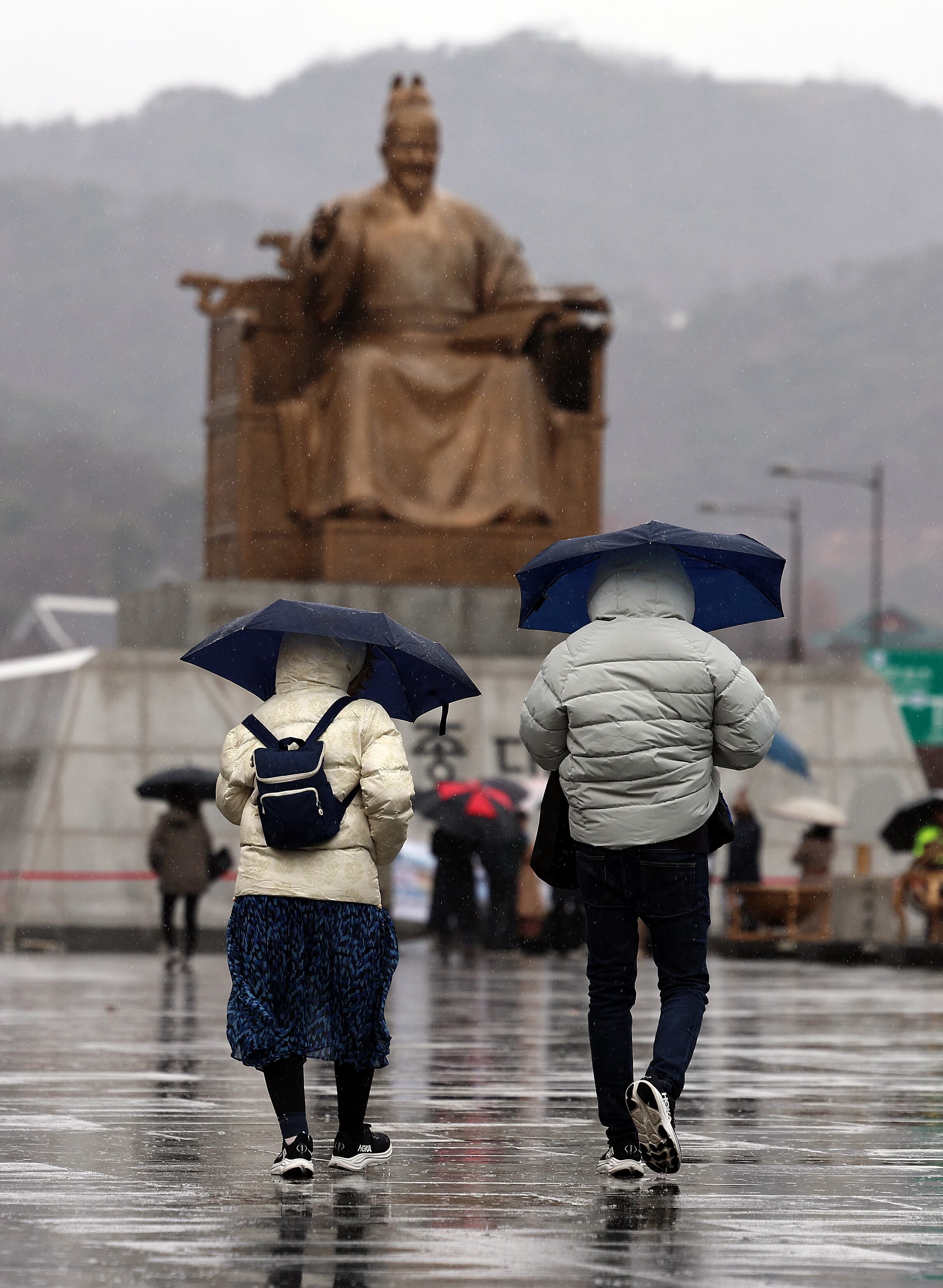 전국 대부분의 지역에 비가 내린 2일 오전 서울 광화문광장에서 우산을 쓴 시민들이 걷고 있다. /뉴스1 |