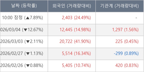 [표] 외국인ㆍ기관 순매매량 (단위 주)