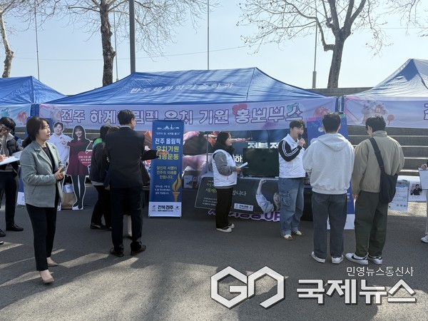홍보부스는 전북대학교 대운동장 일원에 설치돼 오전 10시부터 오후 5시까지 운영한다. 현장에는 전주 하계올림픽' 핵심 메시지를 담은 홍보 영상이 설치돼 유치 비전을 전달하고, 리플릿과 전단 등 홍보물을 배부하고 있다.