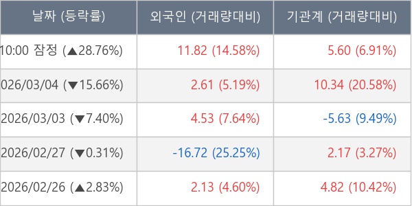 [표] 주요 기관별 순매매량 (단위 만주)