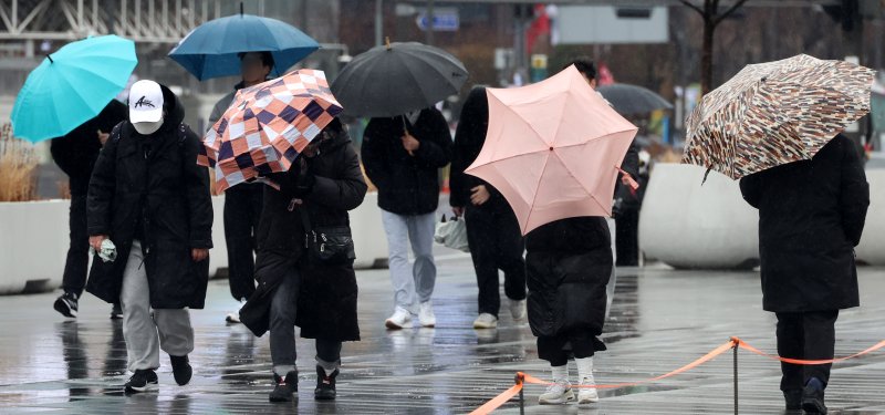 5일 국가데이터처는 '국민 삶의 질 2025' 보고서에서 사회적 고립도가 33.0%로 코로나19 이전 수준으로 회복하지 못했다고 발표했다. 사진은 지난 2일 서울 종로구 광화문광장에서 우산을 쓴 시민들이 길을 걷고 있는 모습. 뉴시스 |